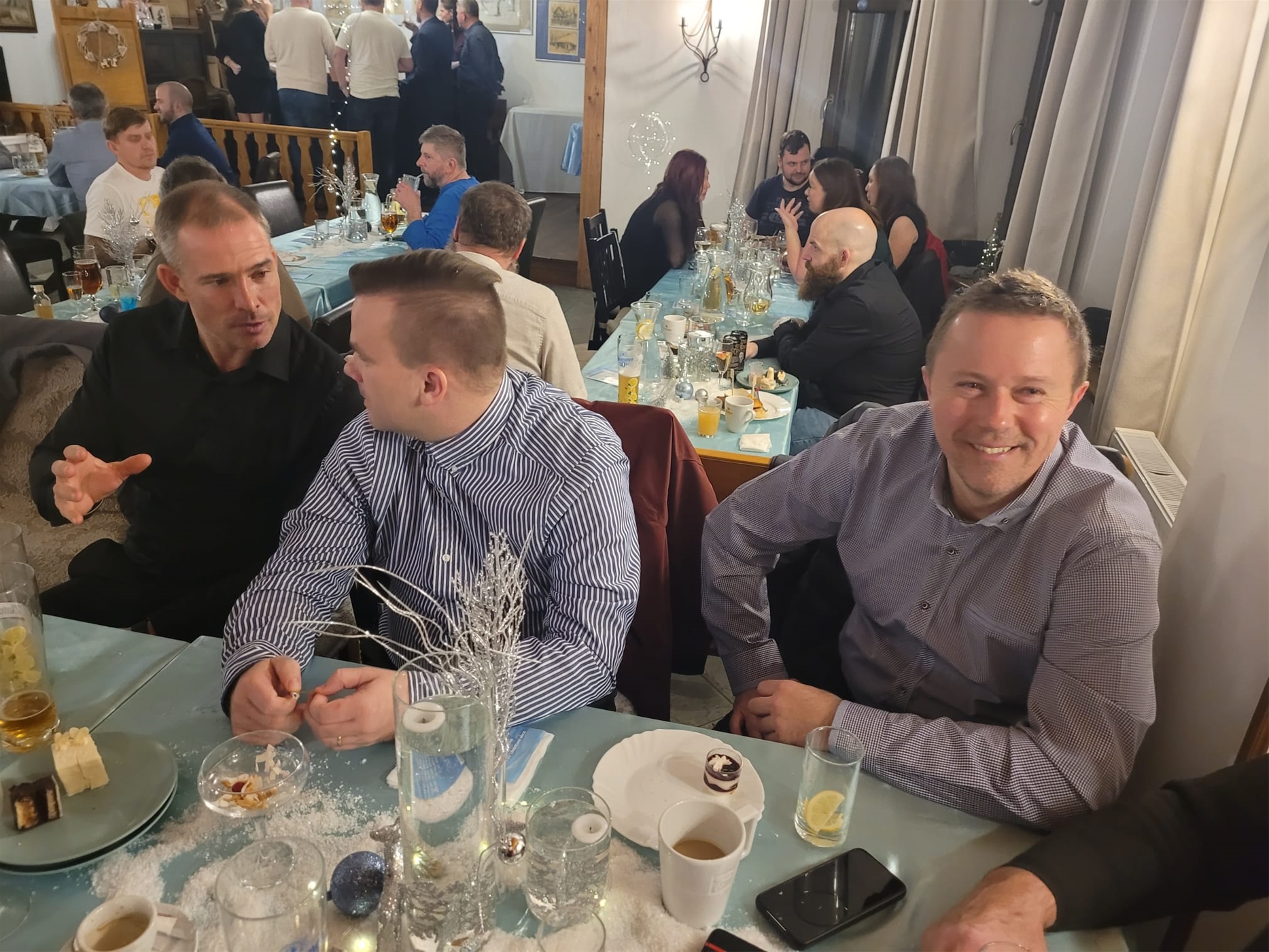 V minulém týdnu jsme si společně užili skvělý firemní večírek v útulném a krásně vánočně vyzdobeném prostředí hotelu Ogar v Pozlovicích. Zahájení vánoční párty obstaralo vedení firmy poděkováním za celoroční práci a nasazení a pak krátkým představením novinek a projektů, které se ve firmě v roce 2025 rozběhly. Poté již následoval bohatý a velmi chutný raut a zábava, kdy například u vinného kasina jsme si mohli vyzkoušet rozeznávat chutě a vůně jednotlivých vzorků vína a vsázet na ně. Atmosféru také zpestřili dva skvělí karikaturisté, kteří stihli nakreslit nejednu památku na večer. Celý večer provázel hudbou energický DJ, který udržel parket v pohybu až do pozdních hodin. Vrcholem večera, na který všichni dlouho čekali, byla bohatá tombola. A aby bylo sobotní ráno co nejpříjemnější, dostal při odchodu každý účastník malý dárek v podobě pravého valašského frgálu. Děkujeme všem za účast, skvělou atmosféru a odvedenou práci v roce 2025.